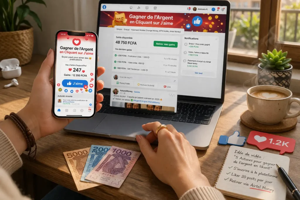 Je vais être direct avec vous. Quand j’ai vu pour la première fois une publicité qui promettait de « gagner 30 € par jour en likant des posts Facebook », j’ai ri. Puis j’ai cliqué. Puis j’ai passé une heure à comprendre le mécanisme. Et franchement, ce que j’ai découvert méritait qu’on en parle sérieusement — pas pour vous vendre du rêve, mais pour vous éviter de perdre votre temps là où il y a mieux à faire.